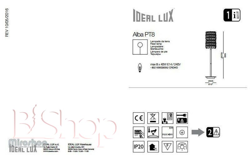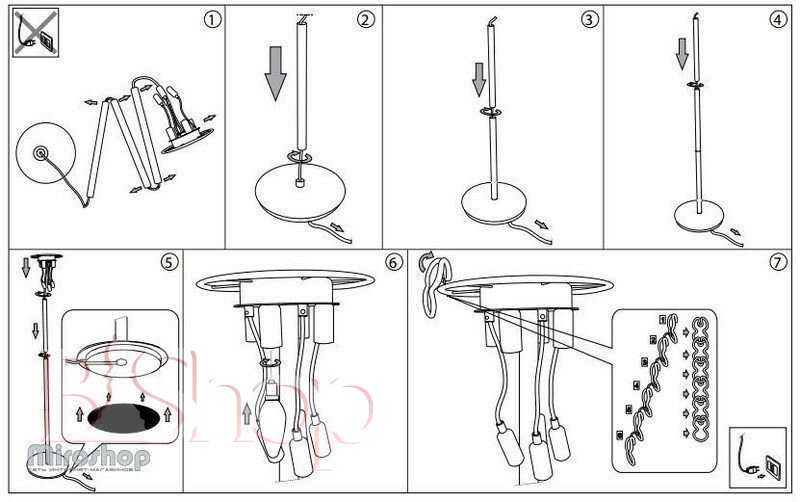 Кількість ламп: 8. Тип цоколя: E14. Висота (див): 159. Потужність лампи (Вт): 40. Діаметр (див): 33.