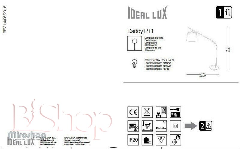 Торшер Ideal Lux DADDY PT1 NERO (110363) (88188)