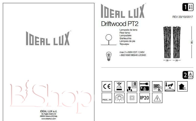 Торшер Ideal Lux DRIFTWOOD PT2 (180946) (13039)