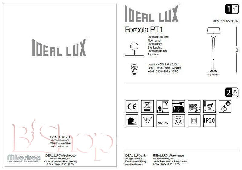 Торшер Ideal Lux FORCOLA PT1 BIANCO (142616) (94220)