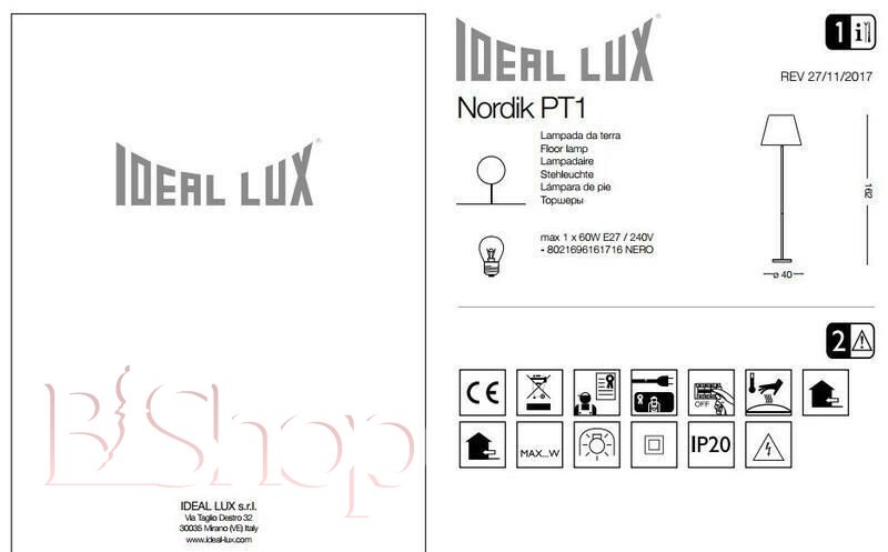 Торшер Ideal Lux NORDIK PT1 (161716) (13081)