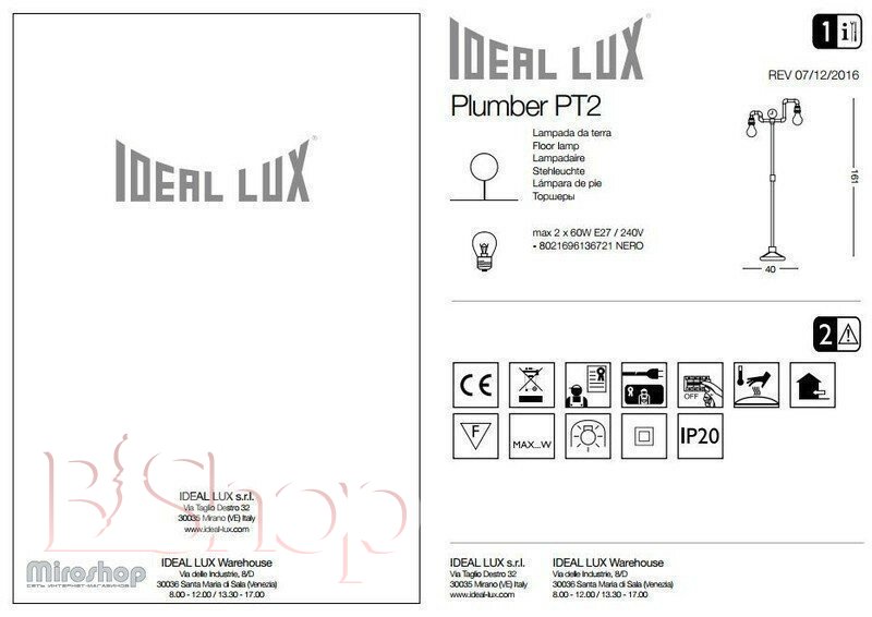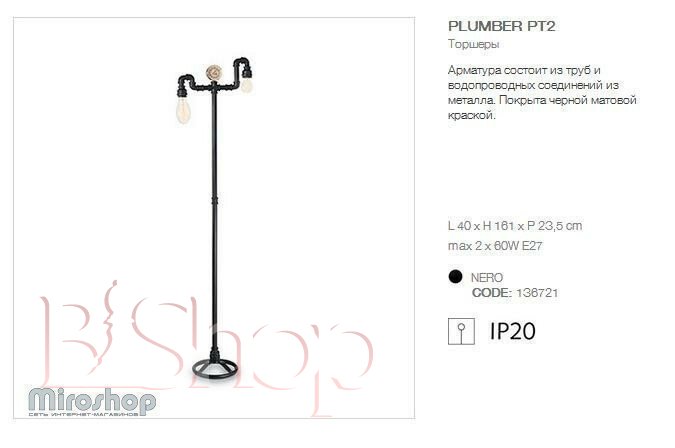 Торшер Ideal Lux PLUMBER PT2 (136721) (94228)