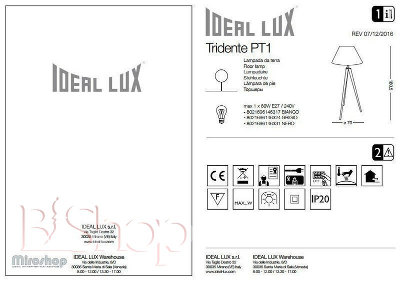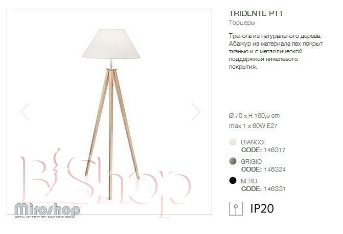 Торшер Ideal Lux TRIDENTE PT1 BIANCO (146317) (94240)
