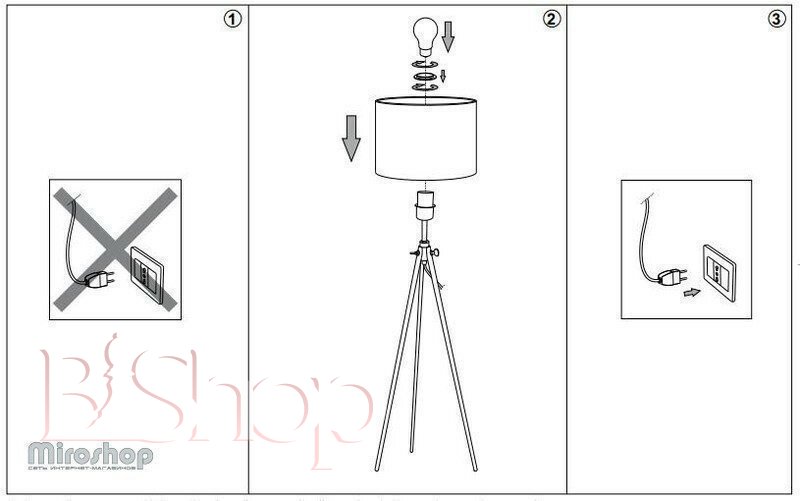 Кількість ламп: 1. Тип цоколя: E27. Висота (див): 164. Потужність лампи (Вт): 60. Діаметр (див): 48.