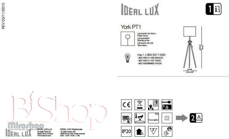 Торшер Ideal Lux YORK PT1 WOOD (089805) (67603)
