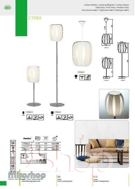 Кількість ламп: 1. Тип цоколя: E27. Висота (див): 156. Потужність лампи (Вт): 60. Діаметр (див): 30.