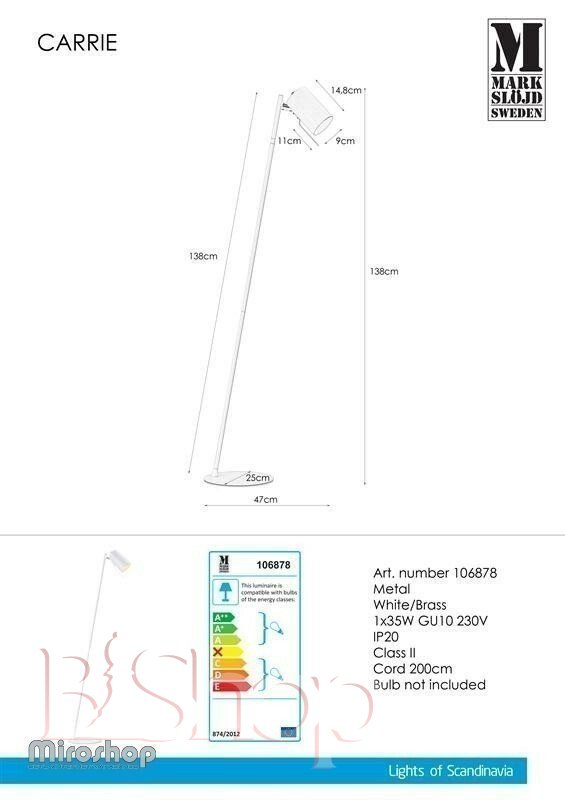 Кількість ламп: 1. Тип цоколя: GU10. Висота (див): 140. Ширина (див): 25. Глибина (див): 38. Потужність лампи (Вт): 35.