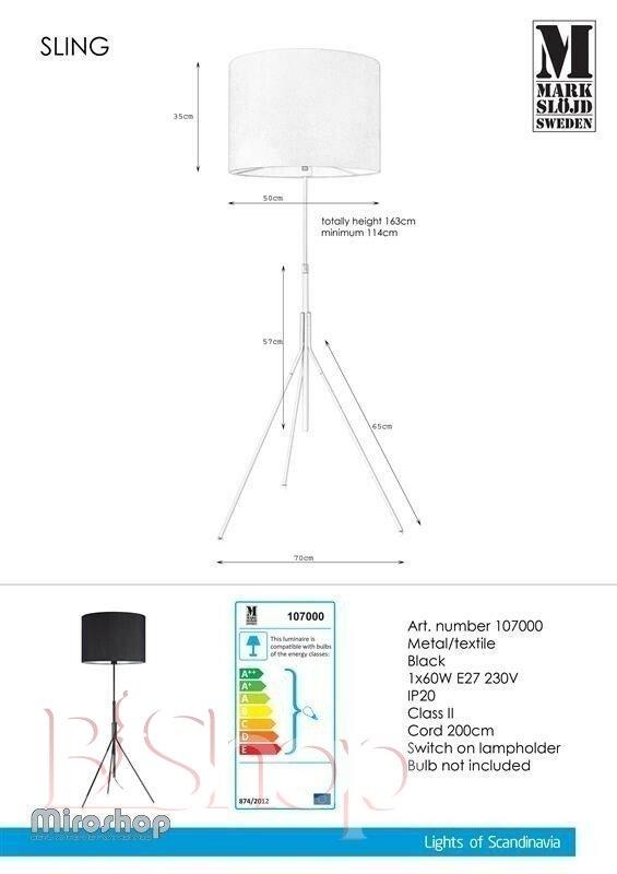 Кількість ламп: 1. Тип цоколя: E27. Висота (див): 163. Потужність лампи (Вт): 60. Діаметр (див): 52.