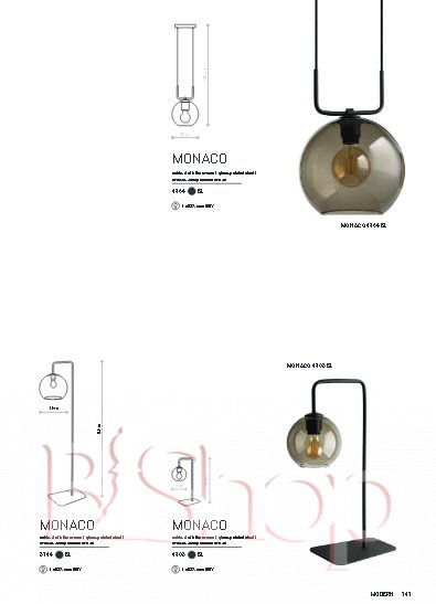 Кількість ламп: 1. Тип цоколя: E27. Висота (див): 160. Ширина (див): 30. Потужність лампи (Вт): 60.
