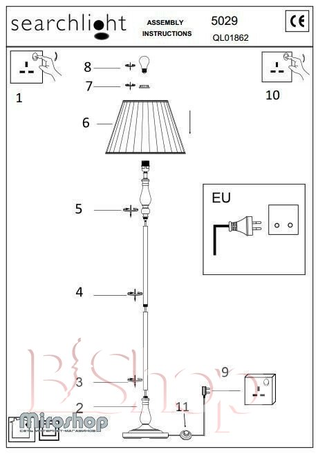 Кількість ламп: 1. Тип цоколя: E27. Висота (див): 166. Потужність лампи (Вт): 60. Діаметр (див): 45.
