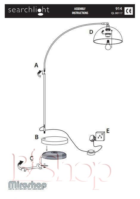 Кількість ламп: 1. Тип цоколя: E27. Висота (див): 180. Ширина (див): 80. Потужність лампи (Вт): 60.