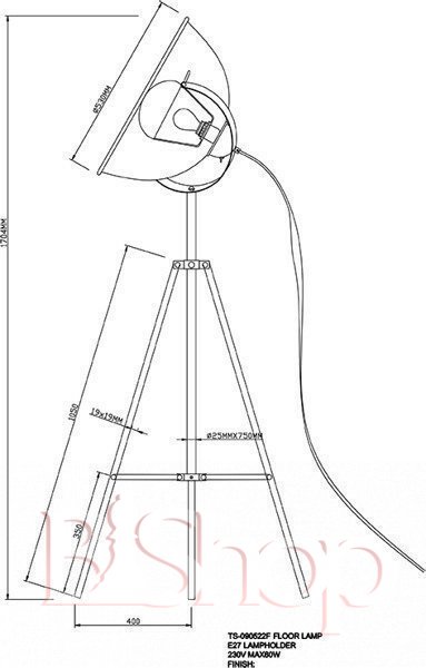 Кількість ламп: 1. Тип цоколя: E27. Висота (див): 170. Потужність лампи (Вт): 60. Діаметр (див): 53.