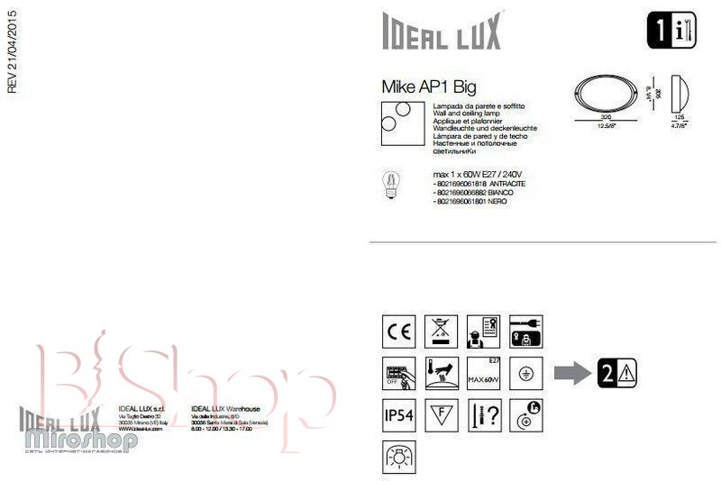 Ideal Lux (Італія)MS529219R- Потужність лампи (Вт): 25 Вт