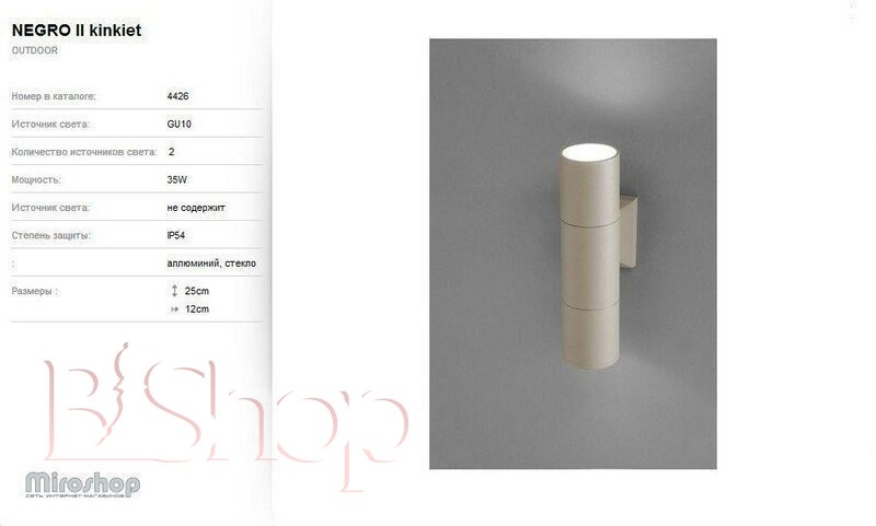 Кількість ламп: 2. Тип цоколя: GU10. Висота (див): 25. Глибина (див): 12. Потужність лампи (Вт): 35.