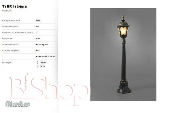 Кількість ламп: 1. Тип цоколя: E27. Висота (див): 115. Потужність лампи (Вт): 60. Діаметр (див): 21.