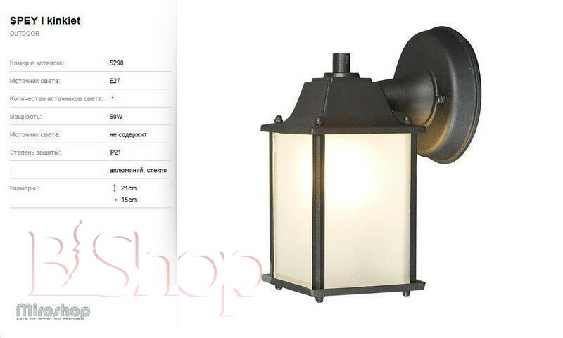 Кількість ламп: 1. Тип цоколя: E27. Висота (див): 21. Глибина (див): 15. Потужність лампи (Вт): 60.